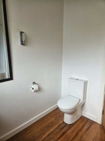 Bathroom has a shower over bath, & toilet
