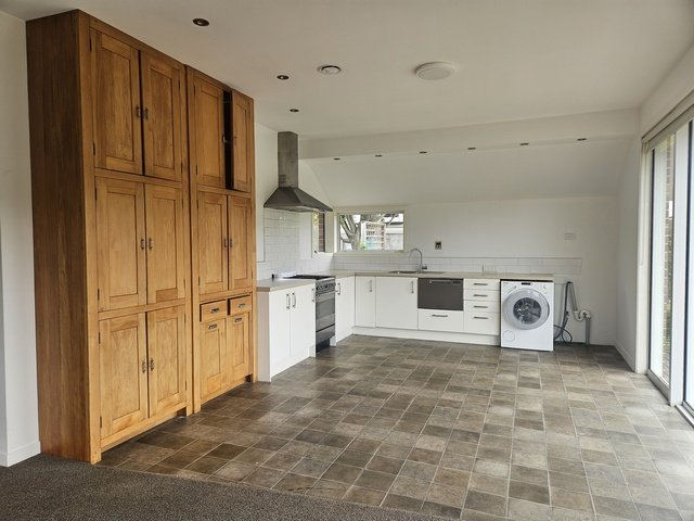 Kitchen is large & open, has a dish drawer, & front loader washing machine. Gas cooking & gas hot water